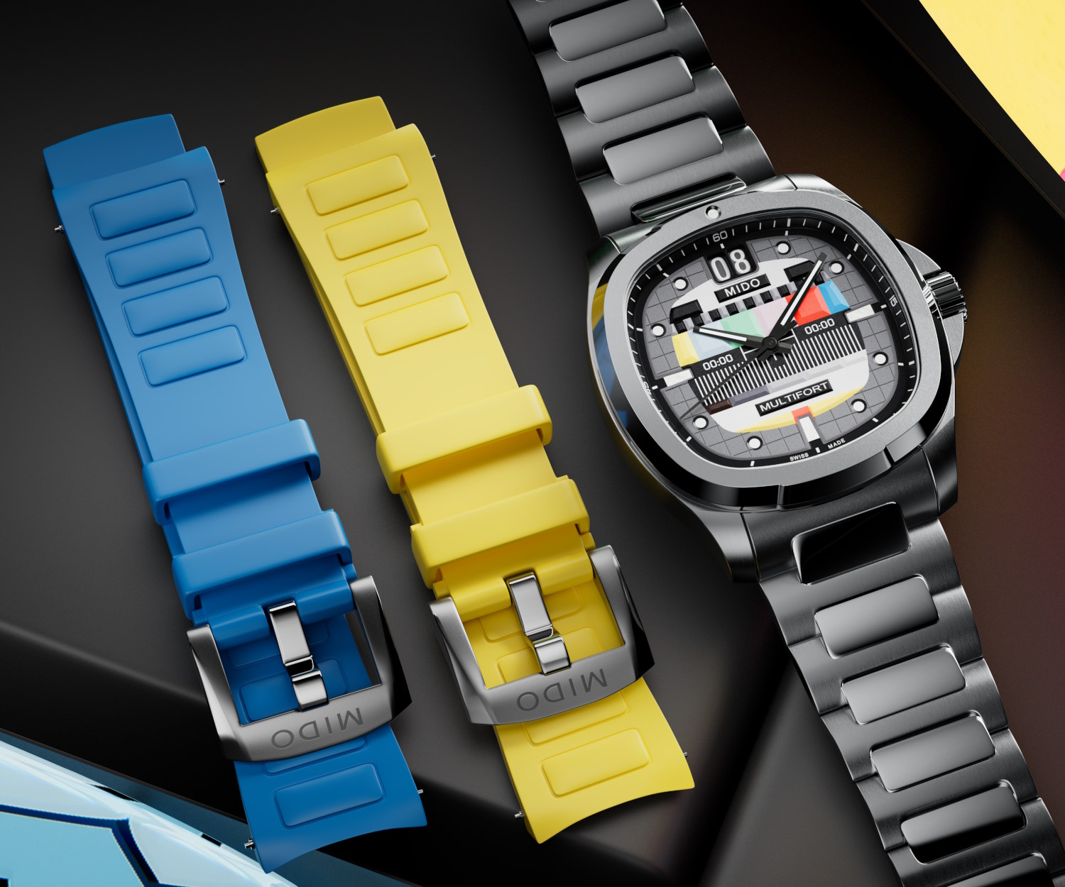 Lorsque Mido avait ressorti sa TV Big Date, je vous en avais parlé, car cette montre au design bien particulier m’avait pas mal attiré. Avec cette version S01E02, la maison suisse nous propose une étonnante version colorée et graphique. On retrouve donc un boîtier en PVD gris satiné et un cadran très graphique qui ressemble encore plus à un écran de télé des années 70 et 80.
