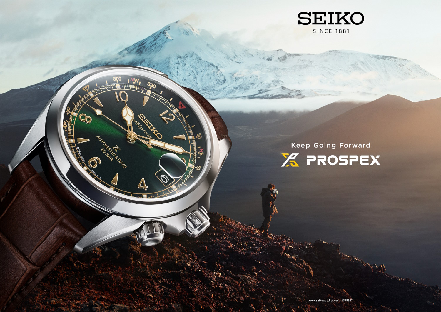 La marque japonaise propose pour ce mois de novembre une nouvelle génération de sa célèbre Prospex Alpinist, avec un look résolument vintage, car inspiré par le modèle originel de 1959. On découvre trois nouvelles références, dont une sublime montre avec un beau cadran vert sur bracelet en cuir marron, une lunette interne boussole visible réglable par la couronne à 4 heures et des index et aiguilles en Lumibrite. Les autres versions sont plus modernes avec le cadran gris et bleu.