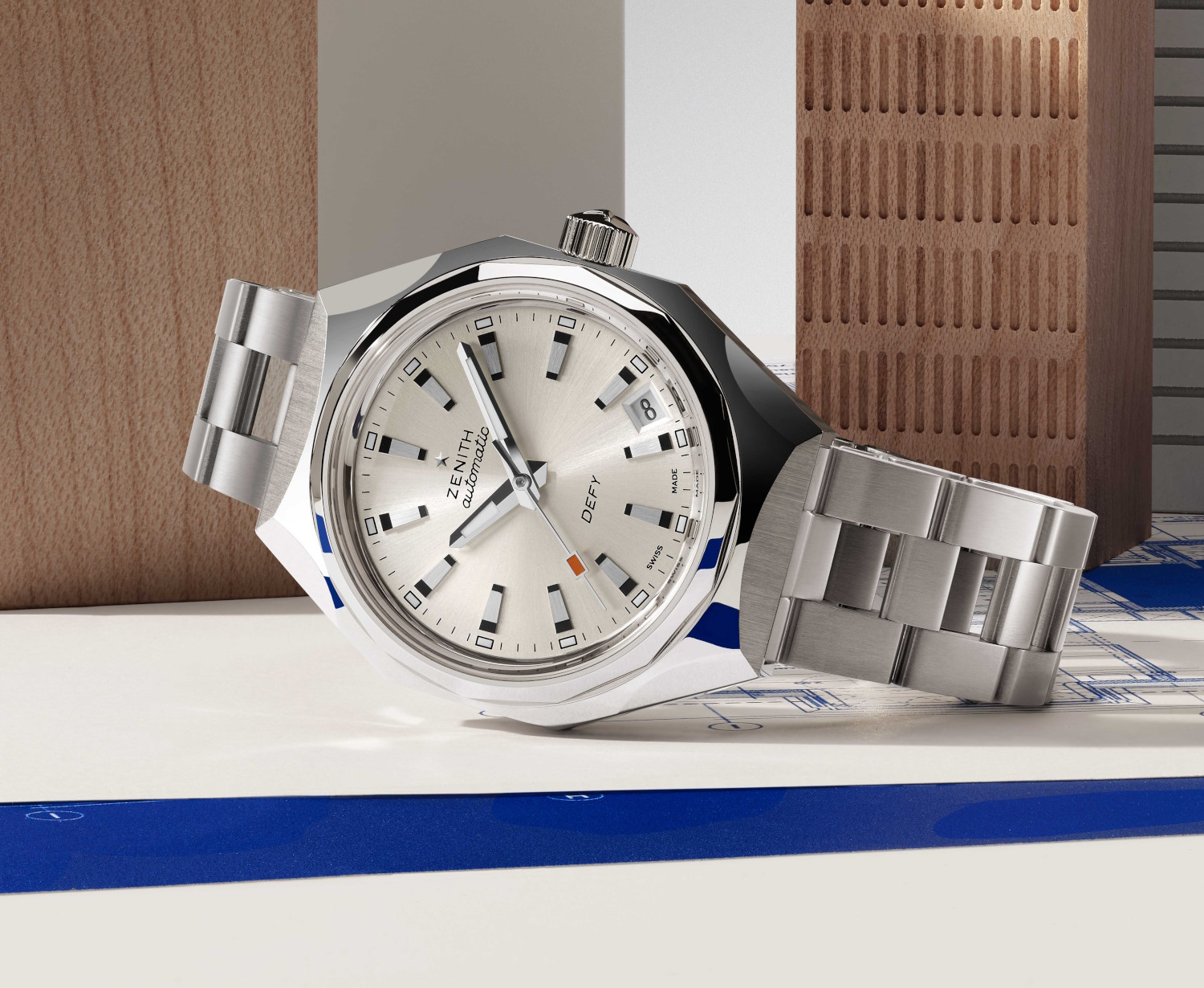 Le modèle qui m’a tapé dans l’œil est cependant celui qui fait revivre une montre vintage de 1969 : la DEFY Revival A3643. Cette interprétation est très bien réalisée car on retrouve ce qui a fait le succès de cette montre de 1969 : le boîtier octogonal (ici de 37 mm), la lunette à 14 pans, le cadran dégradé ou encore le bracelet en acier à échelle.