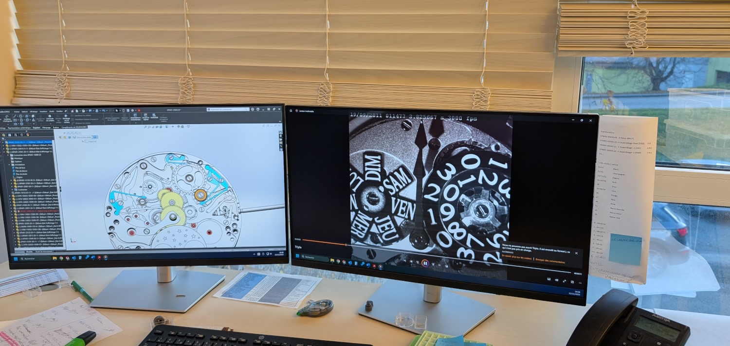 Pour finir la visite, nous nous devions de passer par ce qui fait la force de Pequignet, son bureau d’ingénierie. Car c’est ici que la maison de Morteau conçoit ses mouvements en interne. Car en effet, la maison ne fait pas que les assembler, elle a aussi les équipes pour les concevoir de A à Z, aussi bien des mouvements assez simples qu’avec des complications.
