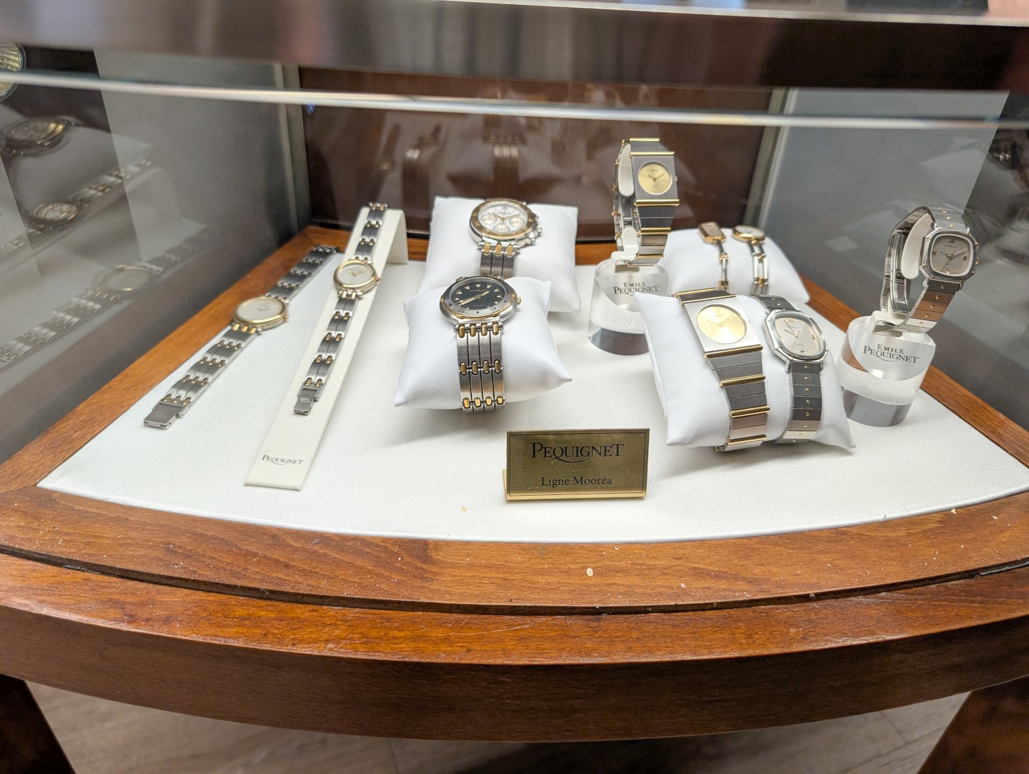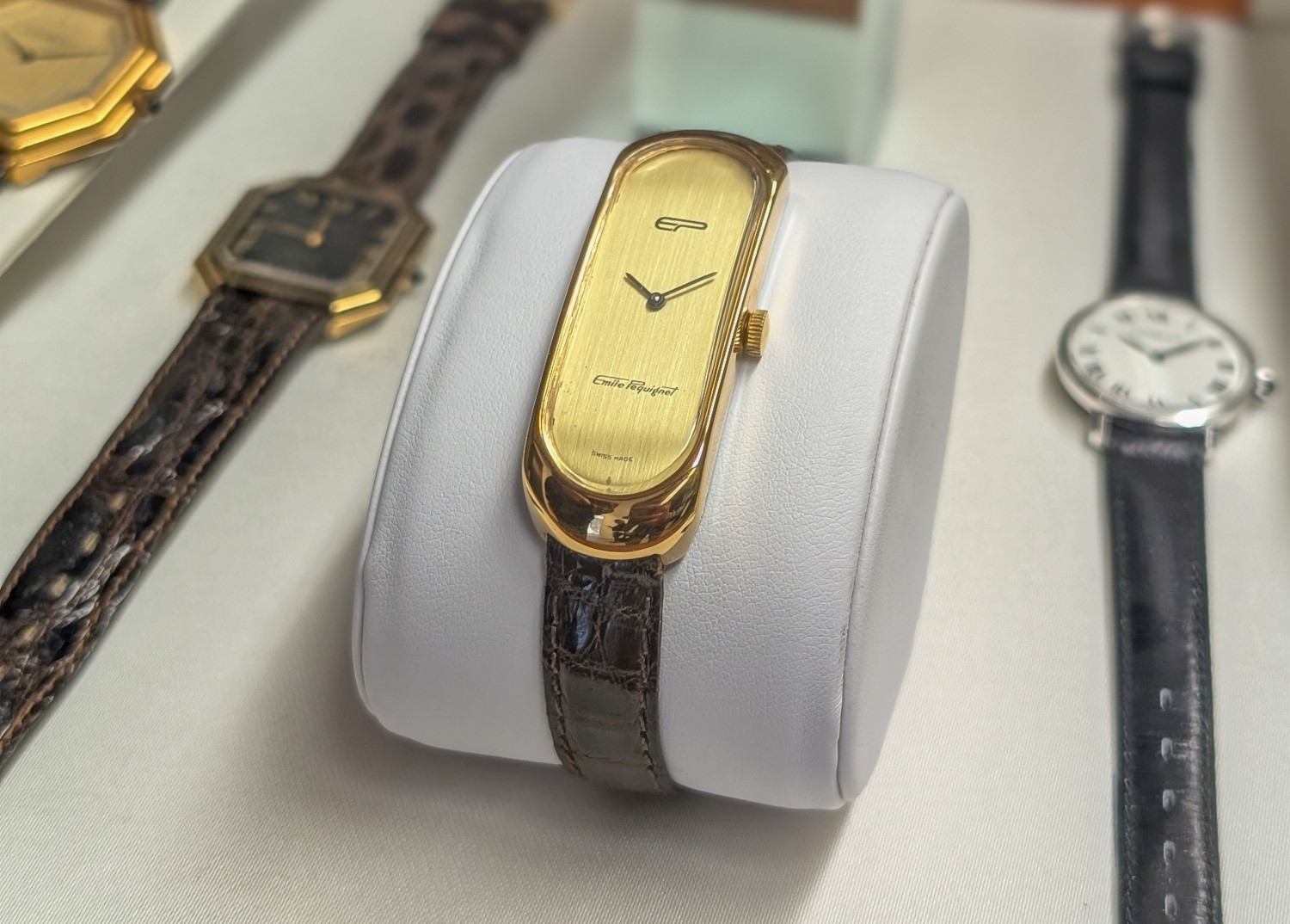 On y découvre donc des pièces parfois très étonnantes : des montres rondes, mais aussi carréesrectangulairesovales ou baignoire comme l’impressionnante 1973, la première montre de Pequignet qui disposait d’un boîtier extra-plat et légèrement galbé avec sa forme baignoire.