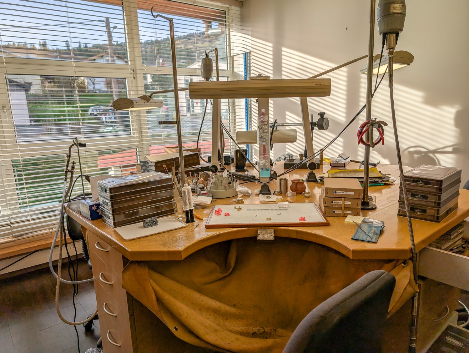 Et comme Pequignet est une véritable manufacture, on trouve à l’arrière de l’atelier, un établi spécialisé dans les bracelets (de montre, mais aussi de bijoux) pour assembler notamment les bracelets Moorea ou Concorde.