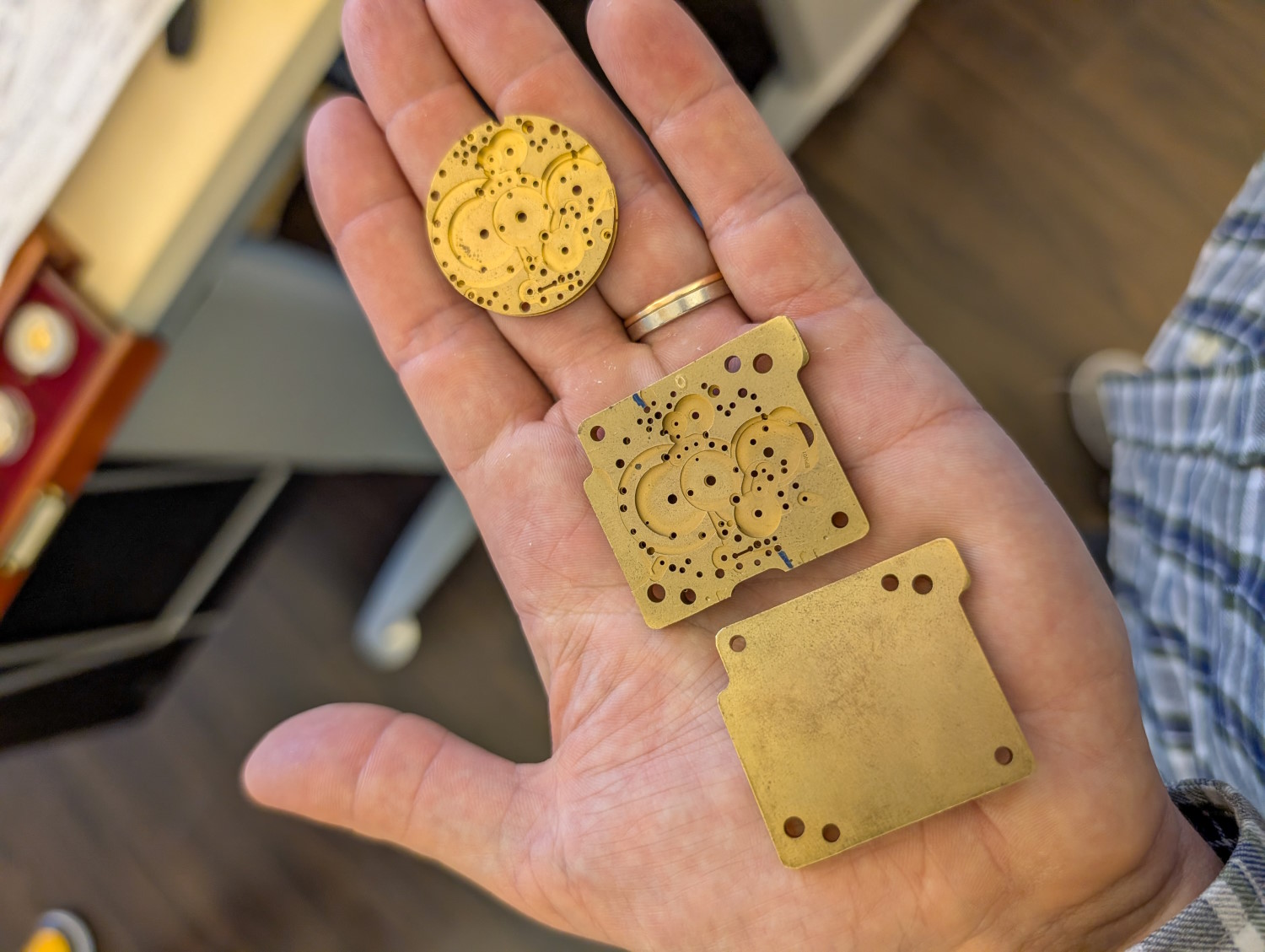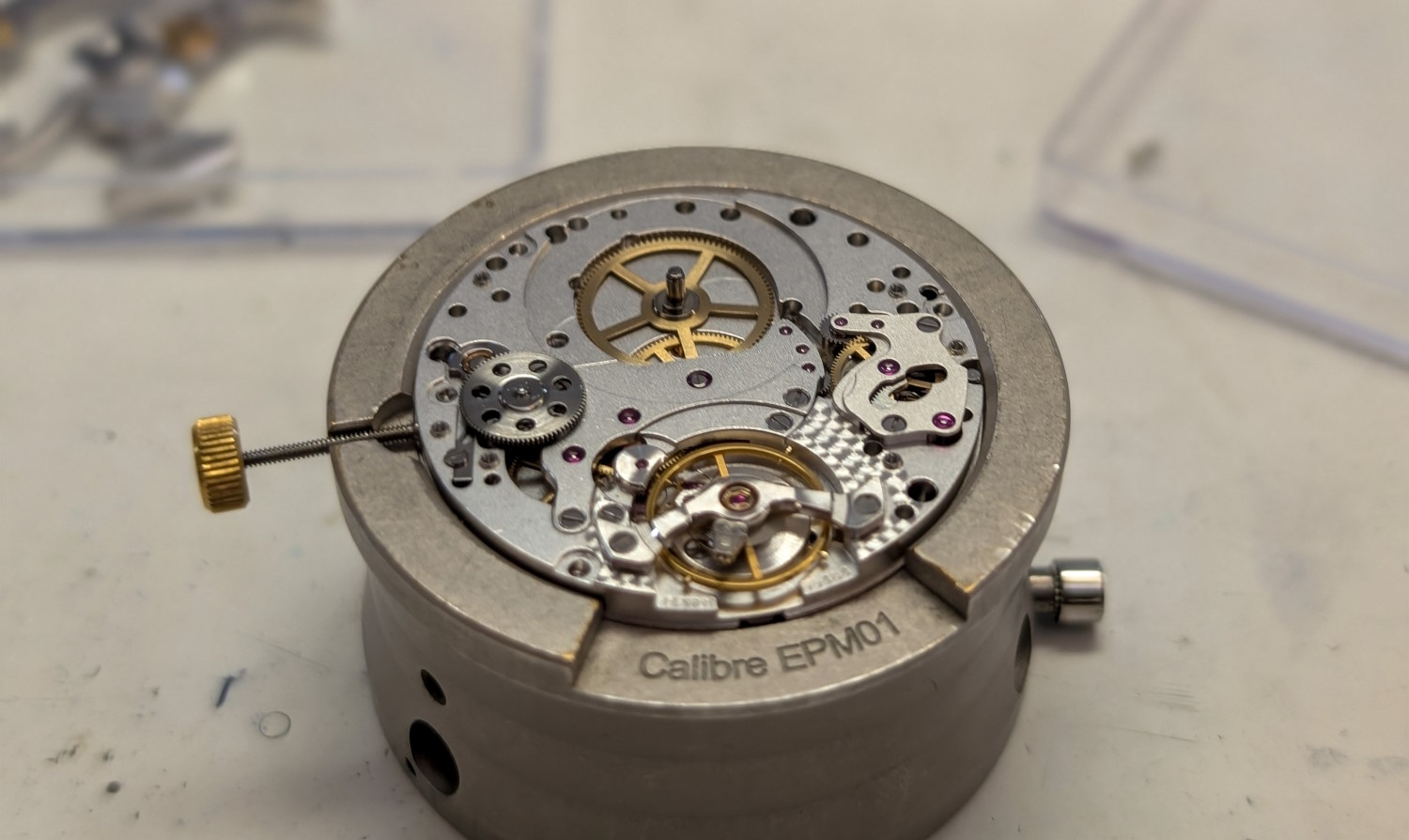 J’ai même eu la chance de pouvoir passer derrière l’établi pour finir d’assembler le mouvement avec notamment le vissage de la masse oscillante pour amorcer ensuite le mouvement. Pas facile à faire quand on sait que les vis sont souvent plus petites qu’un millimètre !