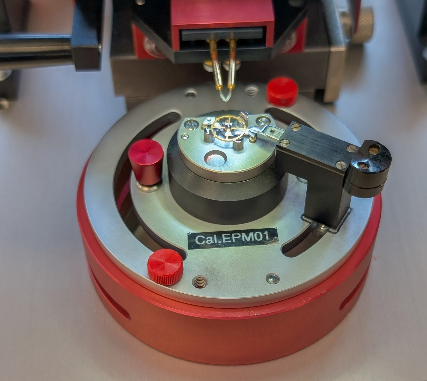 • Une autre qui permet le réglage du balancier via des vis et où il est nécessaire d’utiliser une machine et une binoculaire électronique pour réaliser ce travail, ce qui permet d’améliorer la précision du mouvement
