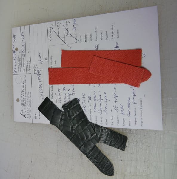 Les artisans de chez ABP vont continuer, de monter les bracelets en assemblant les différentes parties de celui-ci (bracelet, doublure, relief, etc.), puis une couturière va mettre en place la couture, viendra ensuite l’étape de la finition de la tranche, puis des passants du bracelet, la mise en place des trous et de la chappe, ainsi que l’installation de la boucle.