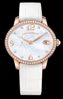 Première pièce de haute horlogerie que j’ai sélectionnée, c’est cette très belle Girard Perregaux Cat’s Eye, inspirée par la forme d’un œil de chat. Equipée d’un mouvement automatique, cette montre dispose d’un boîtier ovale serti de diamant sur la lunette et sur les index. Le fond du cadran est en nacre.