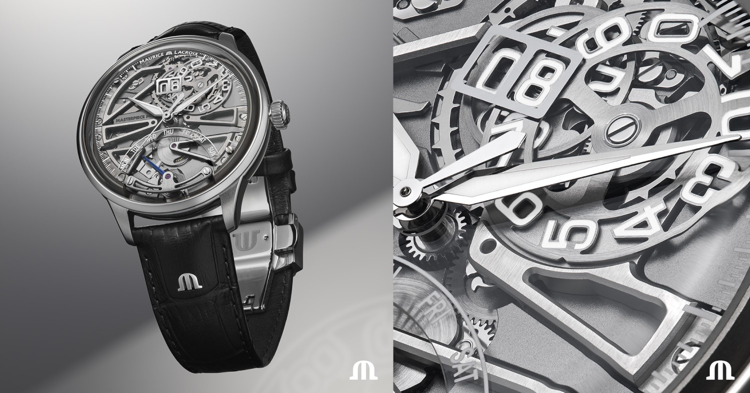 La maison Maurice Lacroix est surtout connue du grand public pour ses créations de montres d’entrée du luxe. Cependant, la marque est aussi une manufacture, avec notamment une spécialisation dans les complications de rétrograde. Cela fait d’ailleurs 25 ans que Maurice Lacroix s’est spécialisée dedans et donc, pour l’occasion, la marque propose une indication rétrograde du jour, une grande date et un beau squelettage.