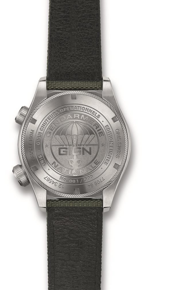 A partir de septembre 2016, la marque Oris va donc proposer une montre automatique sportive en édition limitée (500 exemplaires numérotés pour les civils et des montres dédiés aux gendarmes) pour homme et qui propose en plus une très utile fonction barométrique. Grâce à celle-ci, les gendarmes du GIGN pourront obtenir leur altitude en regardant seulement sur leur poignet. Très pratique, surtout lorsque l’on sait que l’ensemble des membres de cette unité sont des parachutistes et que même 26 d’entre eux disposent du brevet de « Chuteurs Opérationnels ».