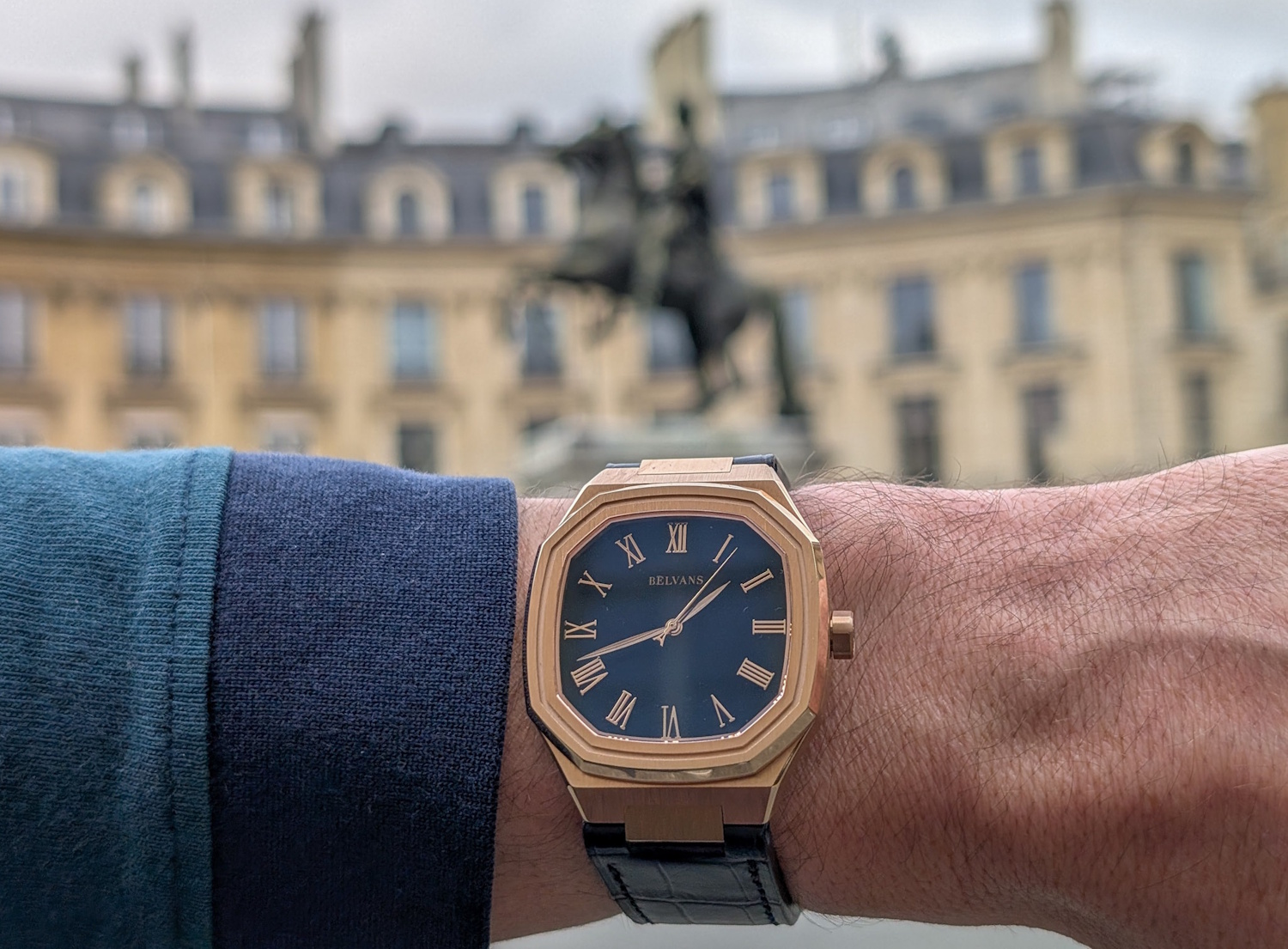 Alors que beaucoup de montres proposées par les jeunes marques sont souvent des montres sport-chic ou des plongeuses, Belvans a choisi de proposer une montre plus élégante, mais avec une certaine dose de modernité notamment grâce à son boîtier octogonal ou encore son bracelet intégré en cuir.