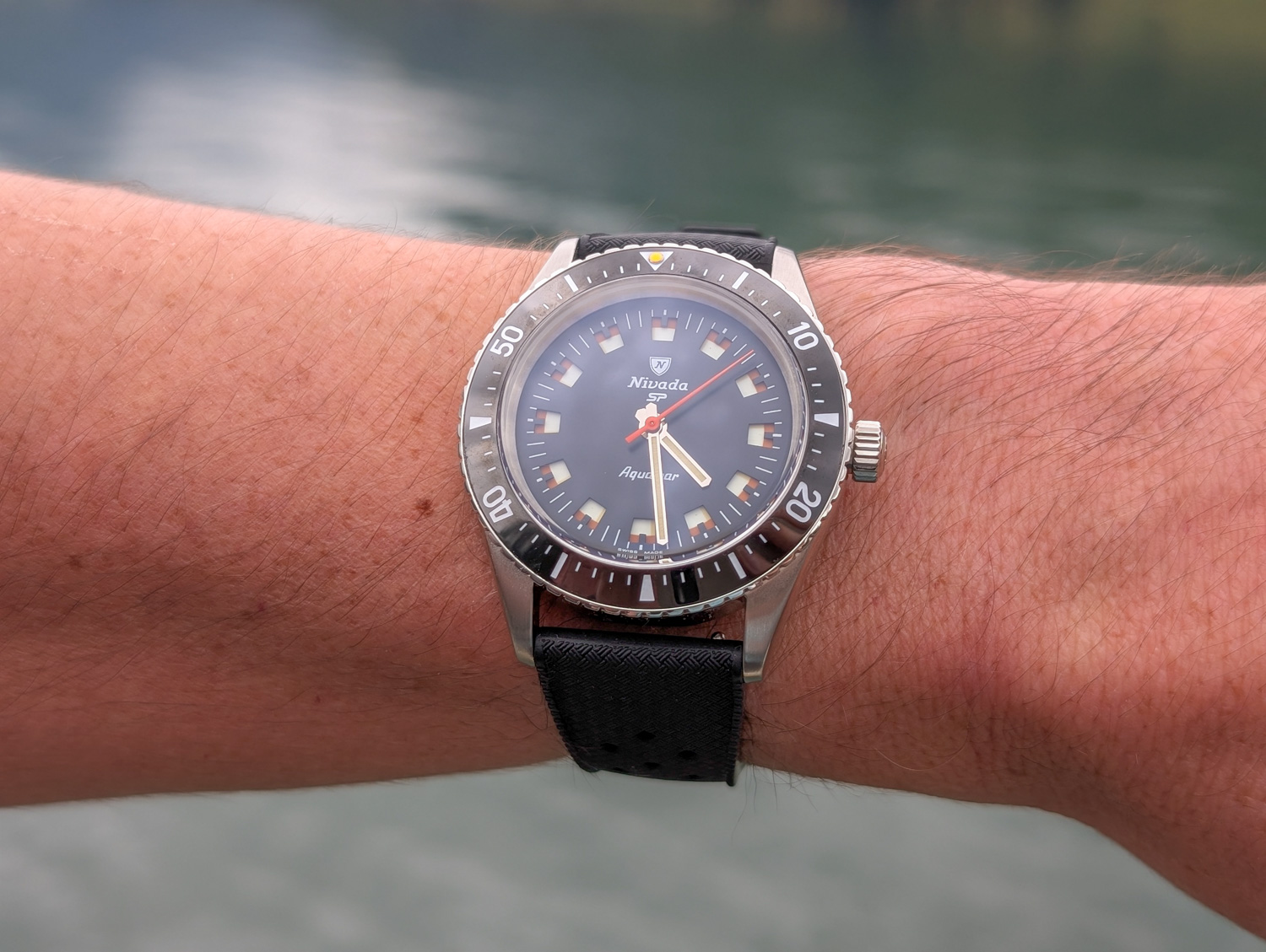 Alors, qu’est-ce que je pense de cette Nivada, sortie il y a maintenant quelques mois (juin 2025, je suis en effet un peu en retard !). Il s’agit d’une belle montre avec un prix assez attractif, avec quelques beaux arguments, notamment ses index assez uniques, surtout qu’ils peuvent changer de teinte, son beau cadran noir laqué très lisible, pas surchargé, et sa qualité globale de fabrication.