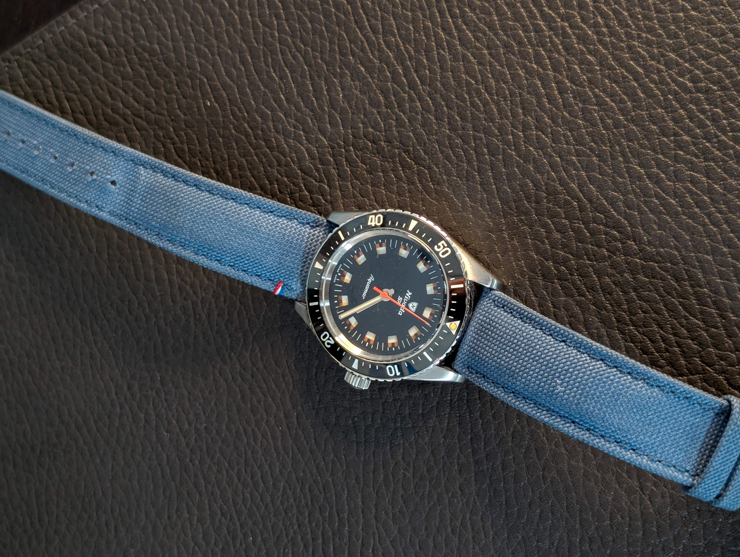 • Une Skindiver néo-vintage de 38 mm, modernisée avec lunette céramique et mouvement automatique Soprod.