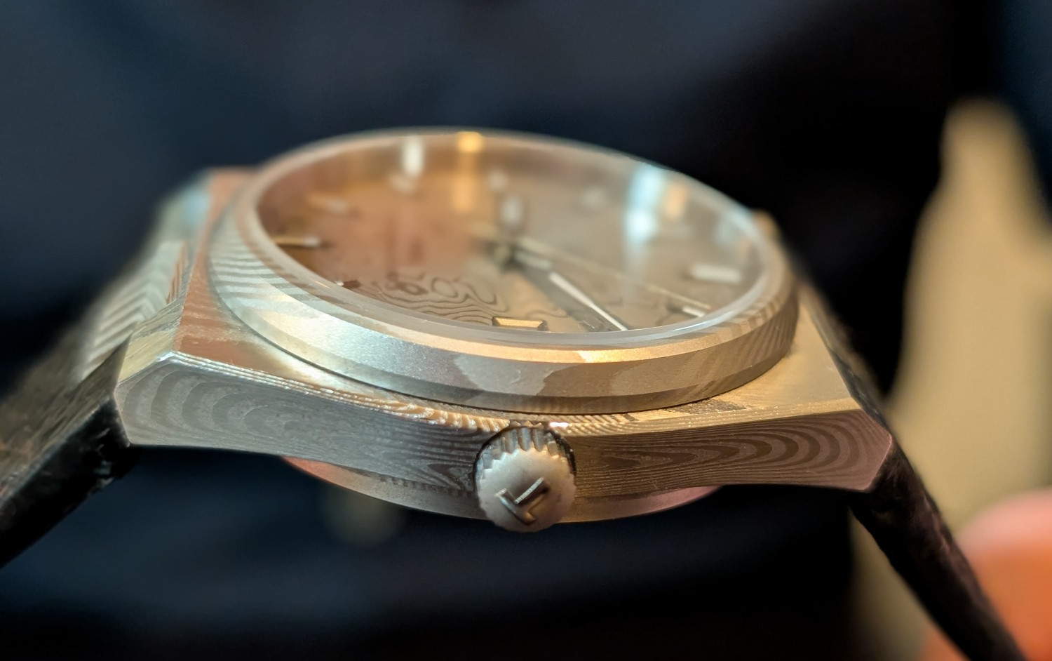 - Pour la version en acier de Damas, le style unique du cadran et du boîtier
