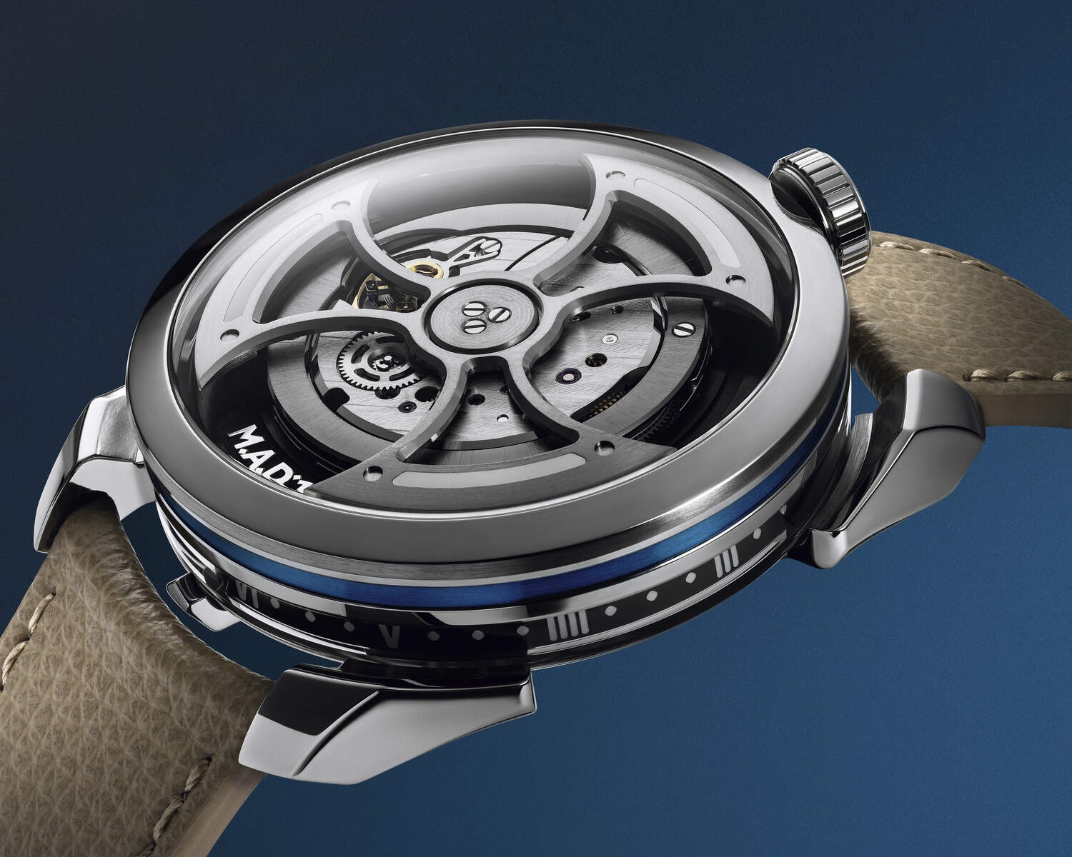 Ces montres arborent la devise « Fortune Favours the Bold » gravée au dos. Un rappel que l’audace paie, chère à MB&F. La LM101 Longhorn, réservée à The Tribe, revisite les cornes allongées emblématiques, avec un boîtier en acier et une palette argent/noir/bleu. Sa sœur M.A.D.1S adopte les mêmes nuances, agrémentées de chiffres romains inédits pour la gamme. Deux hommages visuels qui résonnent comme des clins d’œil à l’histoire de la marque.