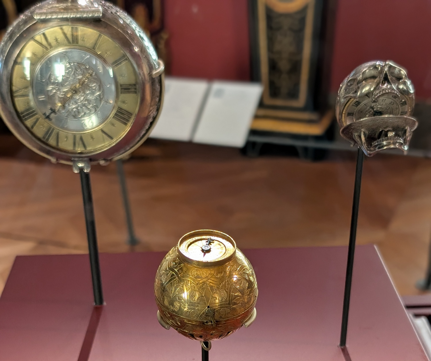 - Montre en forme de tête de mort ou Memento Mori de Jean Rousseau (XVIIe siècle).